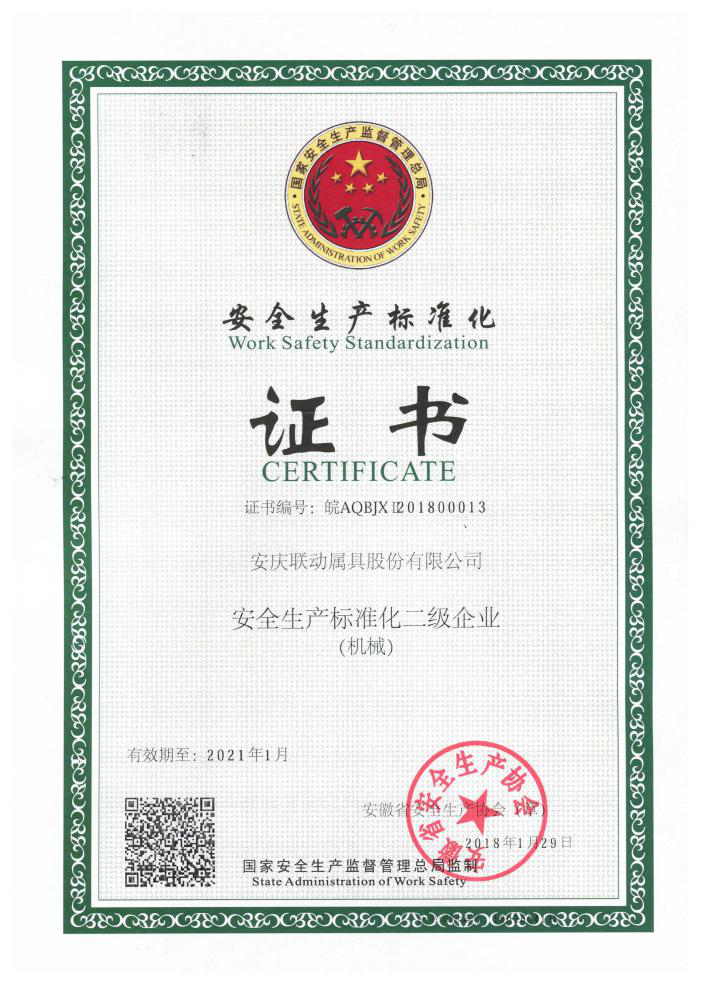 國家安全生產(chǎn)標(biāo)準化二級企業(yè)