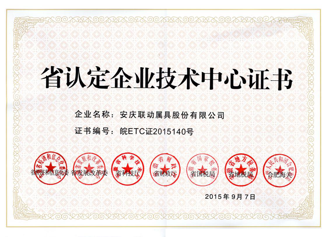 省認定企業(yè)技術(shù)中心證書